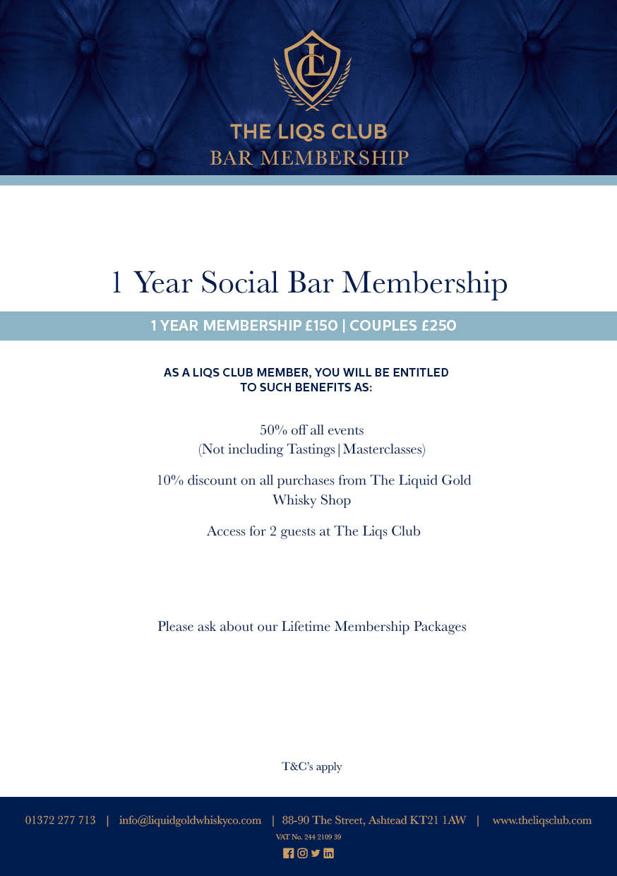 1 YEAR MEMBERSHIP £150 | COUPLES £250